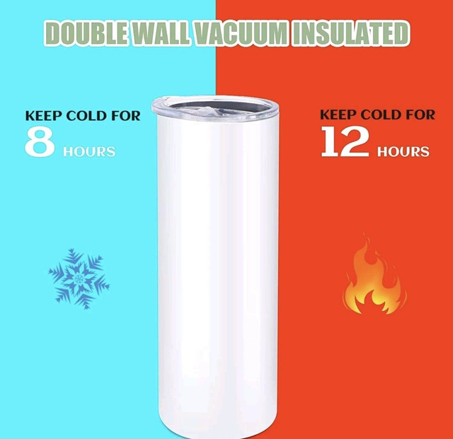 SUBLIMATED - 20oz Stainless Steel Double Wall Vacuum Insulated Skinny Tumbler
