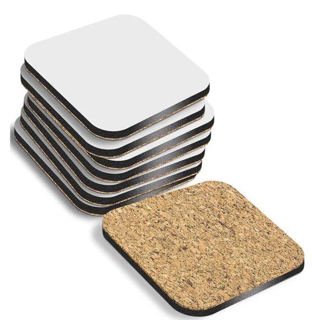 SUBLIMATED - Square MDF Cork Drink Coasters - Set of 4